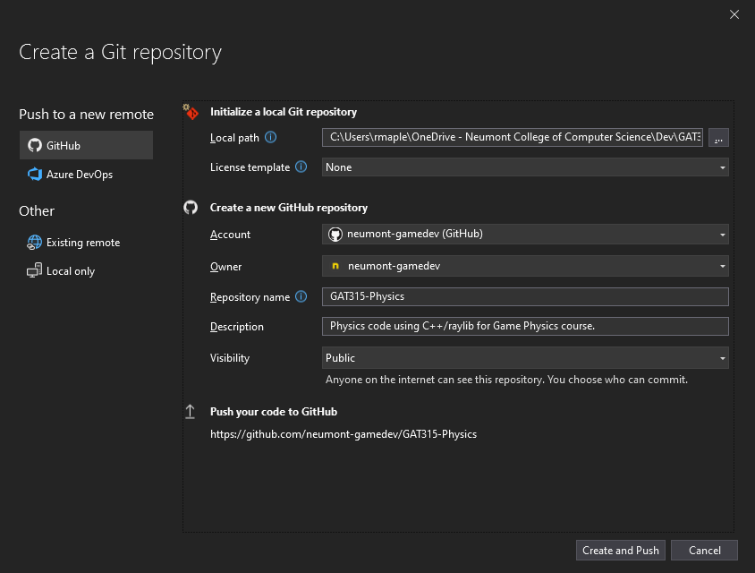 Click Create and Push.